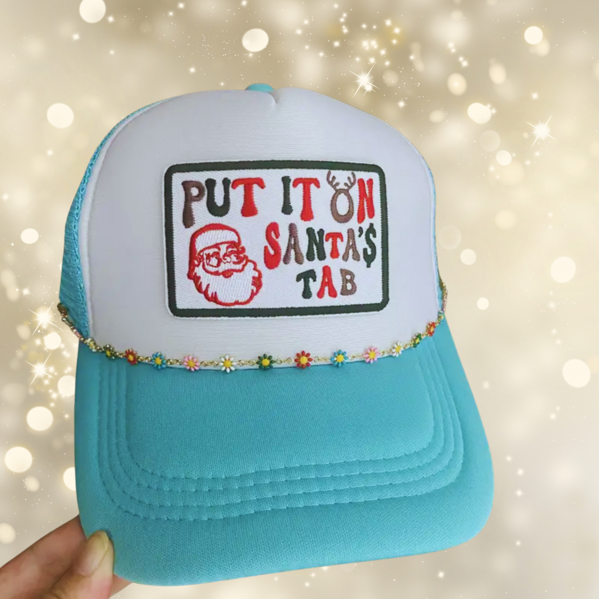 Crafted from high-quality thread and durable fabric, our embroidered Put It on Santa's Tap Patch boasts vivid colors and a textured finish that ensures it stands out. Its easy-to-apply iron-on backing allows for quick customization.
