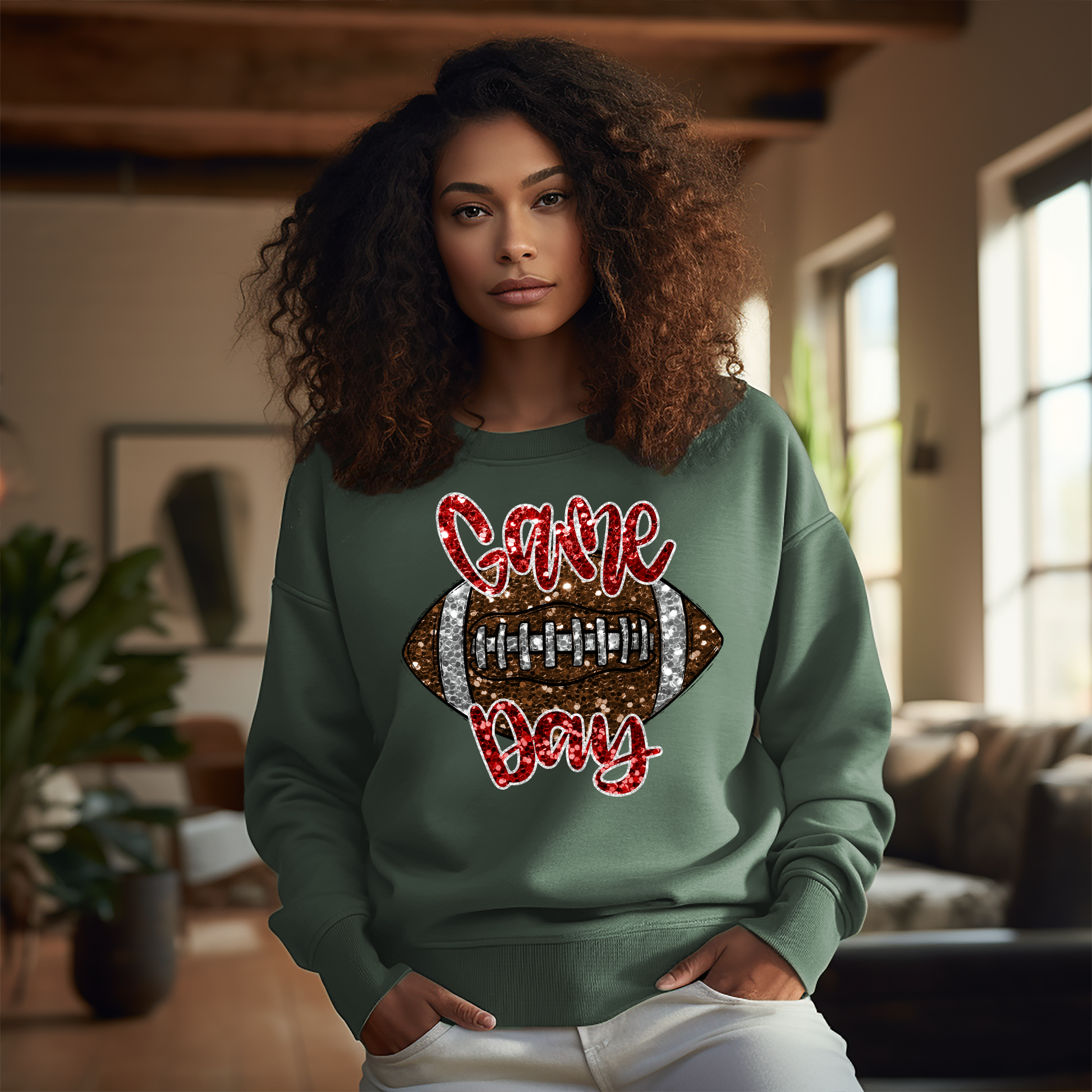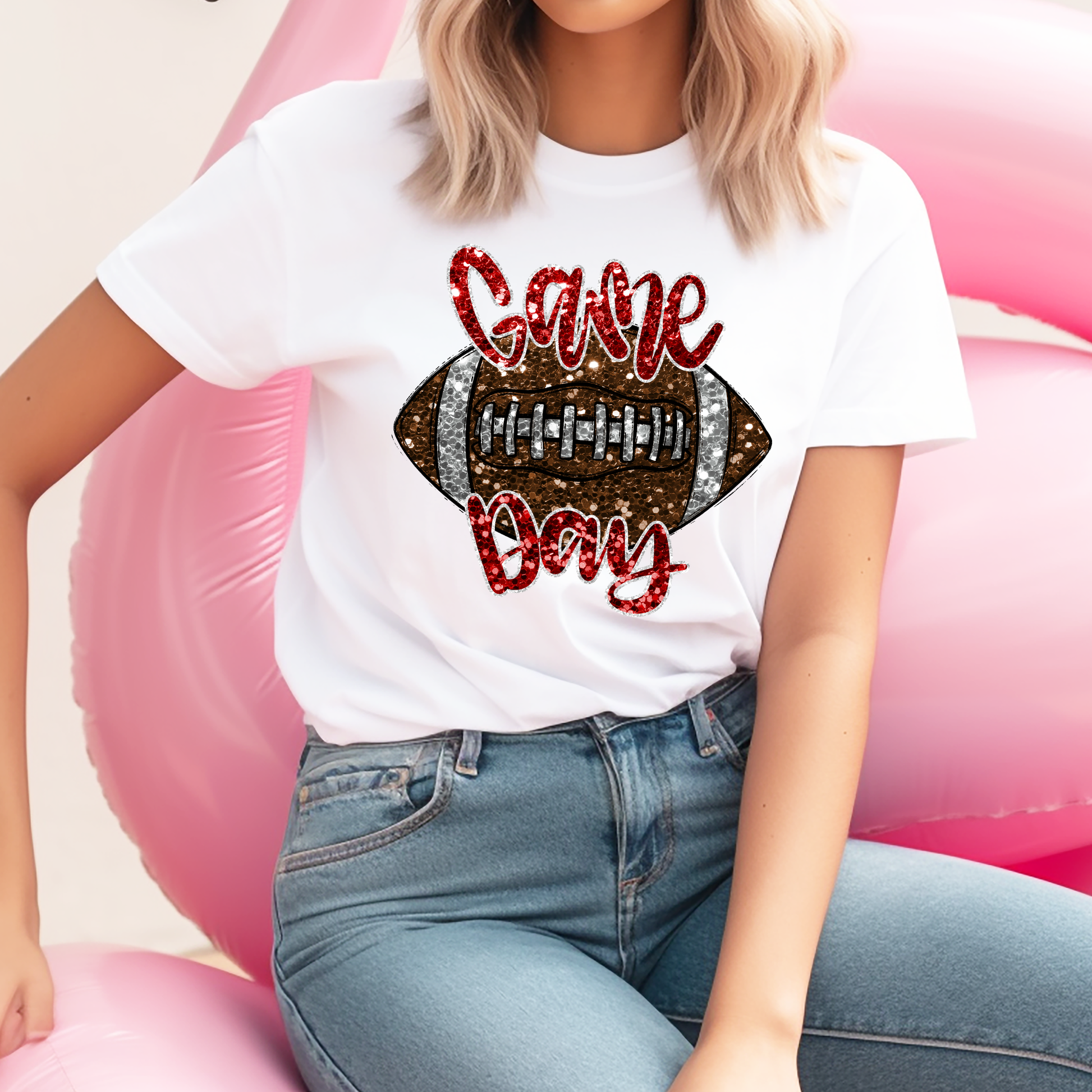 Red Glitter Football Game Day - DTF Transfer