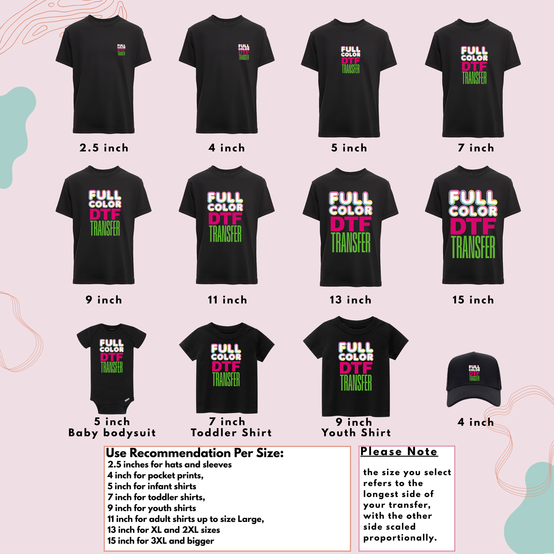 Full color DTF Transfer. Available in multiple sizes.